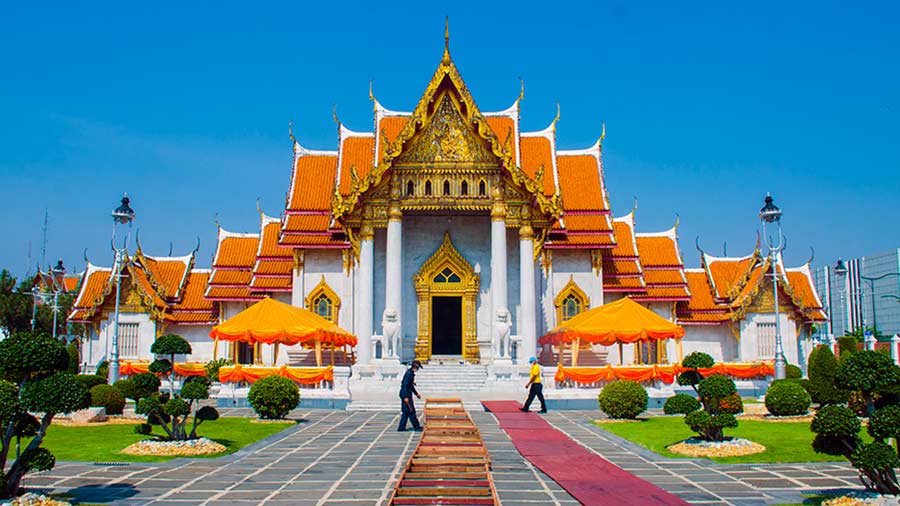 • Overnight in BangkokEnjoy breakfast at the hotel before a half-day temple tour, including a visit to the Marble Buddha Temple. After the tour, return to the hotel and later transfer privately to the airport for your departure flight.